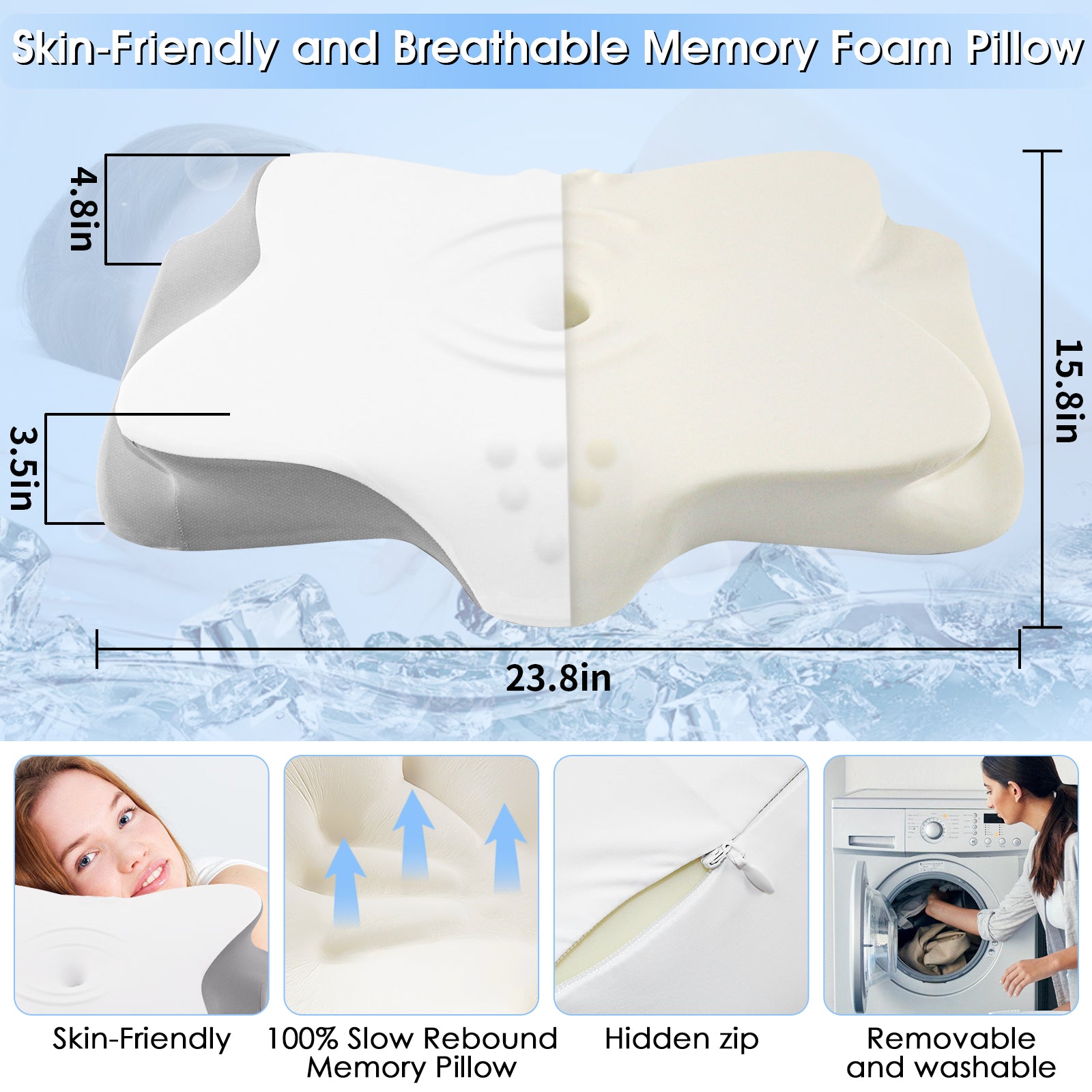 Relieves Neck, Shoulder, and Back Tension: The contour design naturally follows the curves of your body, easing tension in the neck, shoulders, and upper back, helping you wake up feeling refreshed and pain-free.