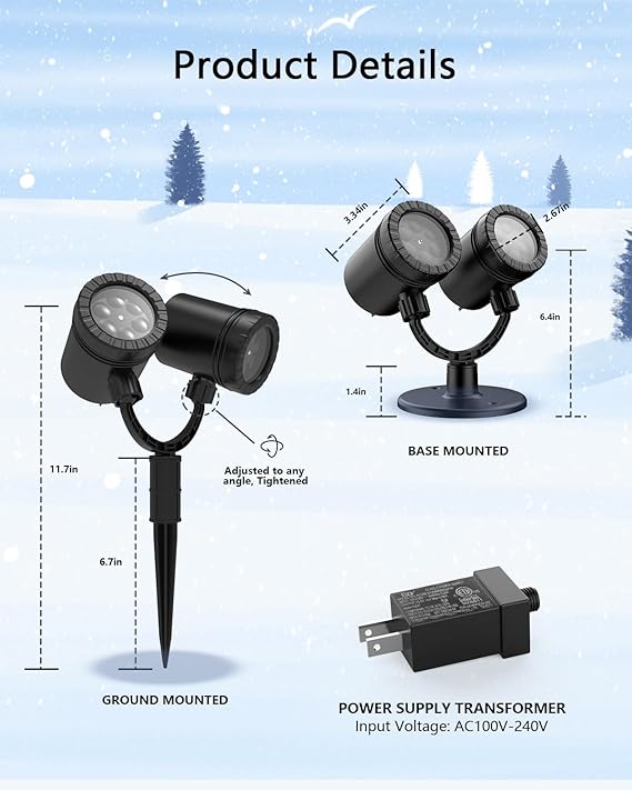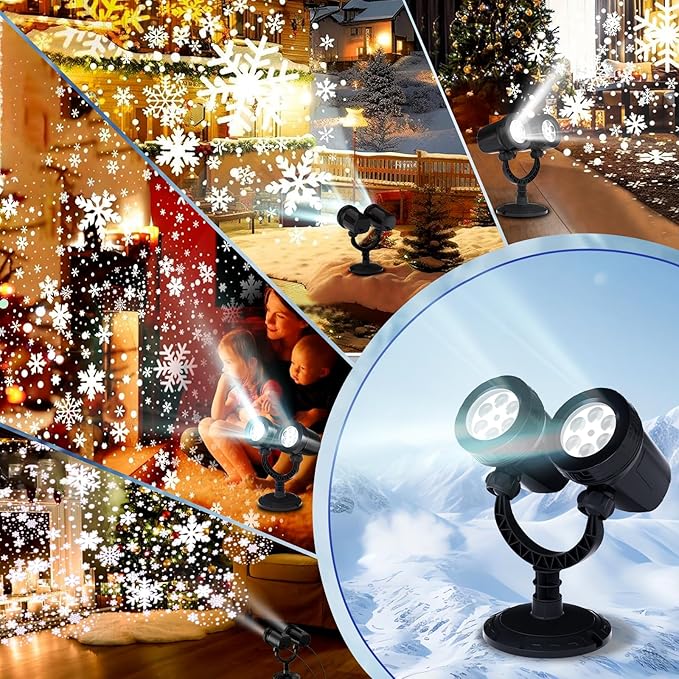 Our double-headed outdoor light is made with premium materials and advanced technology to ensure stability and durability. It will continue to provide mesmerizing snow effects for multiple holiday seasons. It is your reliable holiday decoration partner to provide beautiful snow scenes year after year.