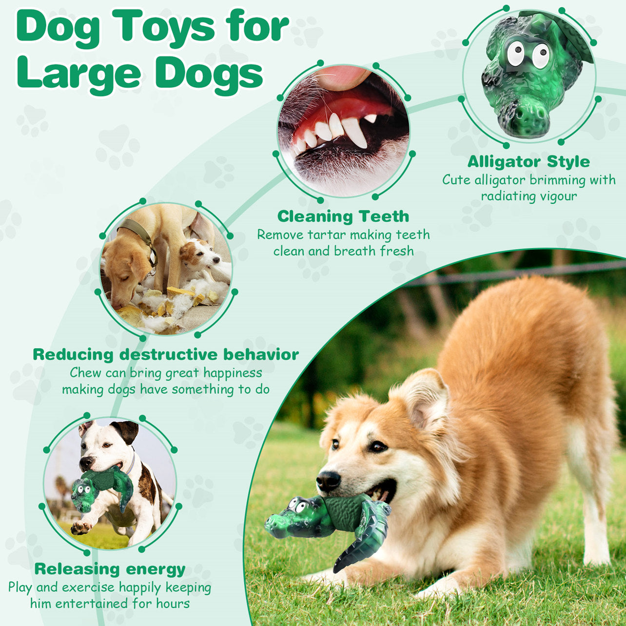 Our large dog toys feature a special crocodile design with strong nylon that won't be chewed to pieces by dogs. After numerous tests including German Shepherds, Mastiffs, Siberian Huskies, Labradors, golden retrievers, bulldogs, and other powerful chew dog breeds, this dog chew toy has proven to be rugged and durable. It is especially suitable for 20-100-pound dogs who like to chew and nibble. Not only does it satisfy a dog's natural urge to chew, but it also helps them reduce boredom and anxiety.