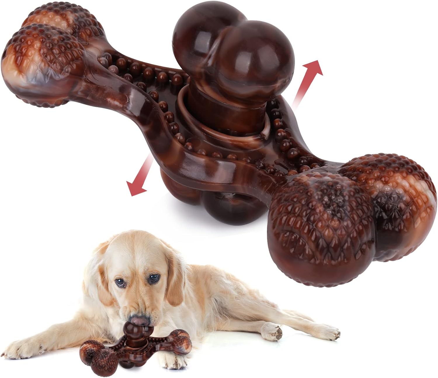 After the sturdy test of Labrador, Husky, Rottweiler, Boxer, Mastiff, and Doberman, this toy is made of special nylon, which is safe and will not hurt the dog's teeth. It is very suitable for aggressive chewers and dogs will go crazy for it.