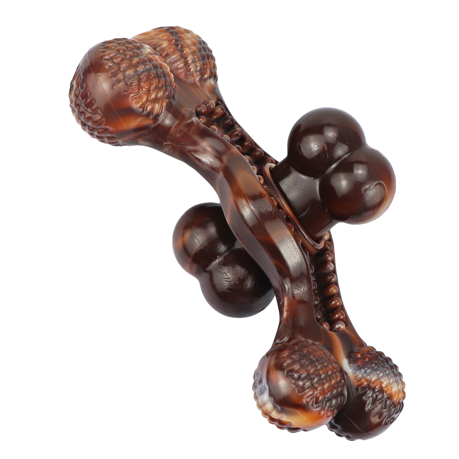 We designed a stepped texture on the surface to increase friction so that dogs can quickly grab and start chewing. There are raised points on the front and back, designed to allow dogs to clean their teeth while chewing, and help prevent plaque and tartar accumulation when dogs chew. The back of the toy is designed with grooves for applying peanut butter and nutritional cream.