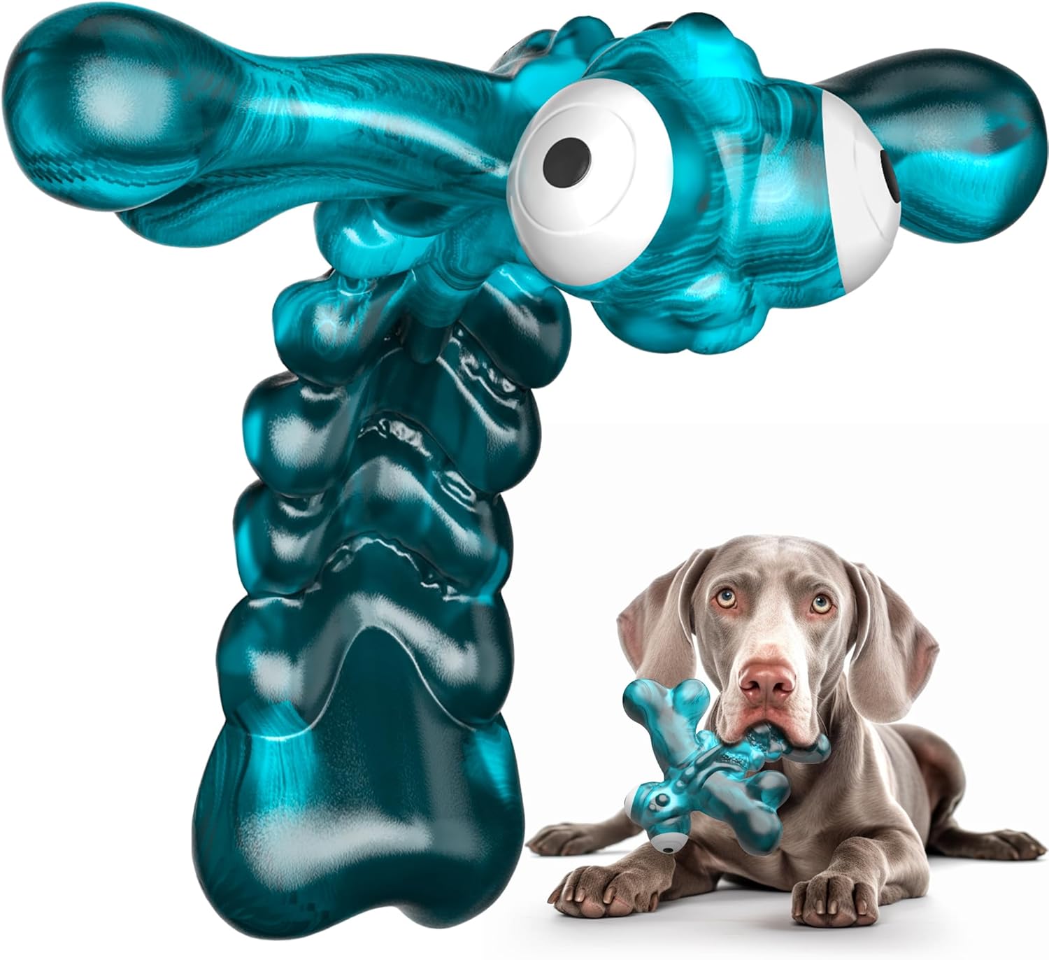 The unique bone dog toy shape is inspired by dragonflies. The curved dragonfly shape is paw-friendly, easy to grasp and bite the wings and body. Satisfy the dog's all-round chewing or grinding dog toys experience, suitable for large dogs who like to chew. The body parts of the tough dog toys are designed with grooves to place food or toothpaste, protecting the dog's appetite and oral health.