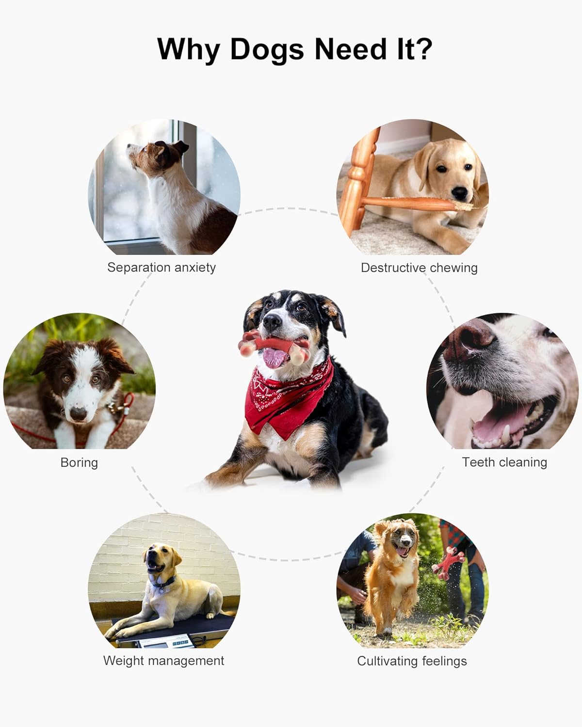 Durable dog toys with realistic bone shapes make it easier for your pet to identify, and the materials are as hard as real bones, but they don't have the same dangers. With bacon flavor, it stimulates the dog's interest and satisfies the natural desire to chew.