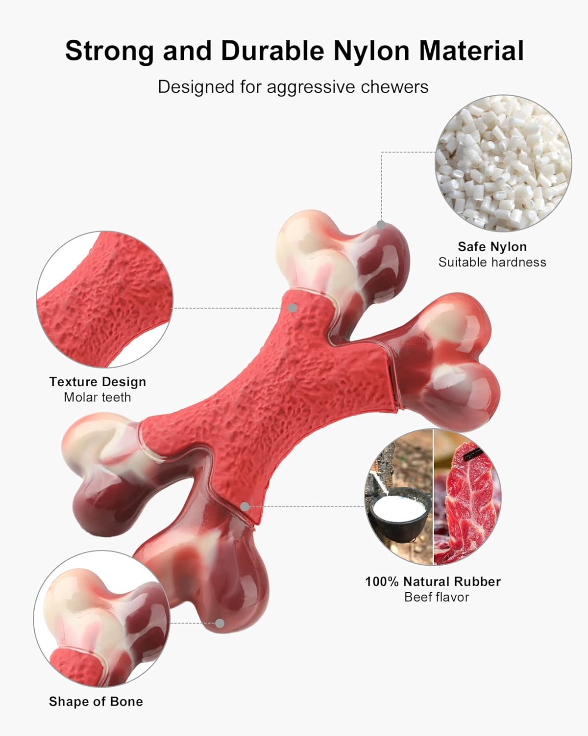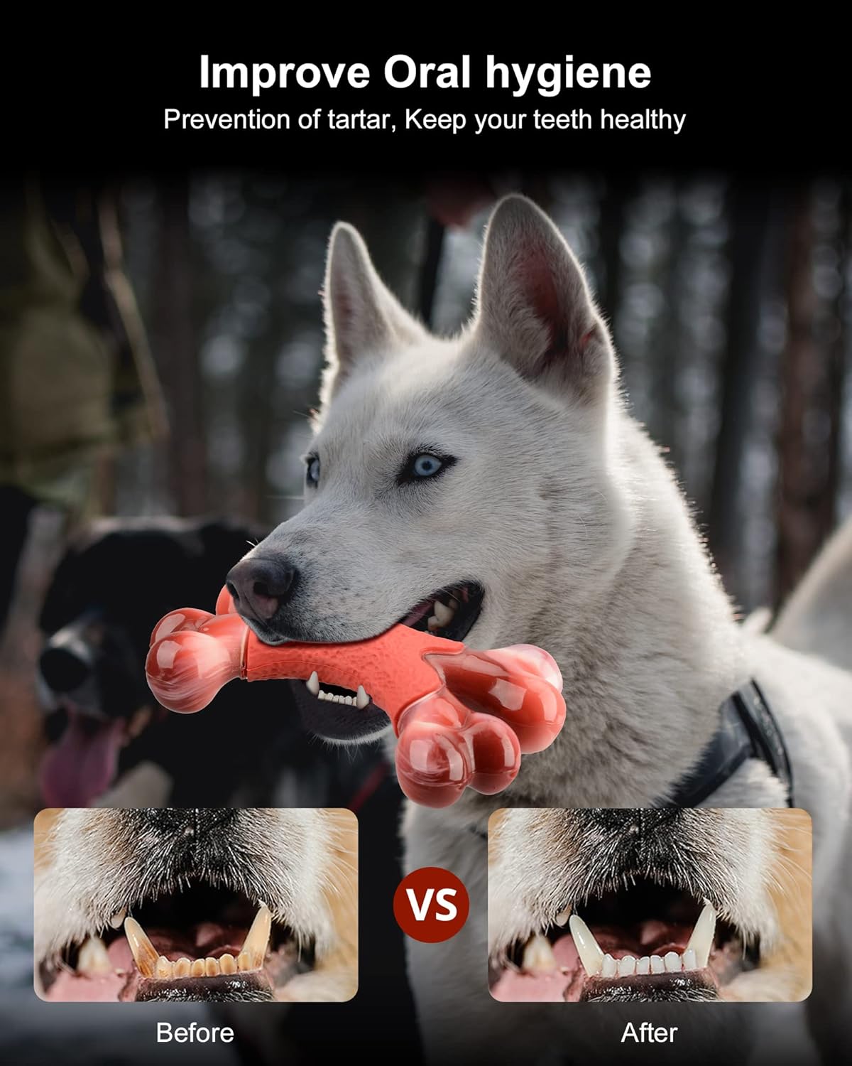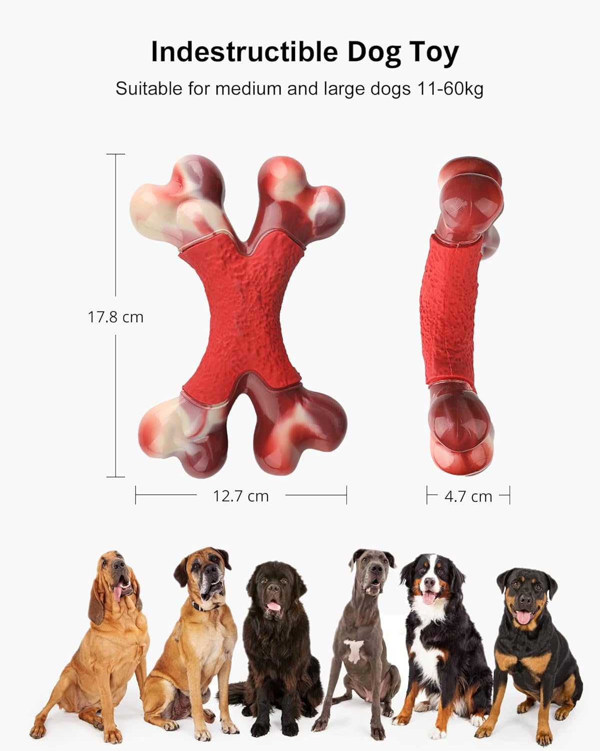 Dog chew bone toys are great Christmas toys and birthday toys for your furry baby. There are no completely indestructible dog toys, but this is the closest. We recommend playing under supervision and replacing damaged toys in time. If you have any questions about the toy, please contact us and we will be happy to solve it for you.