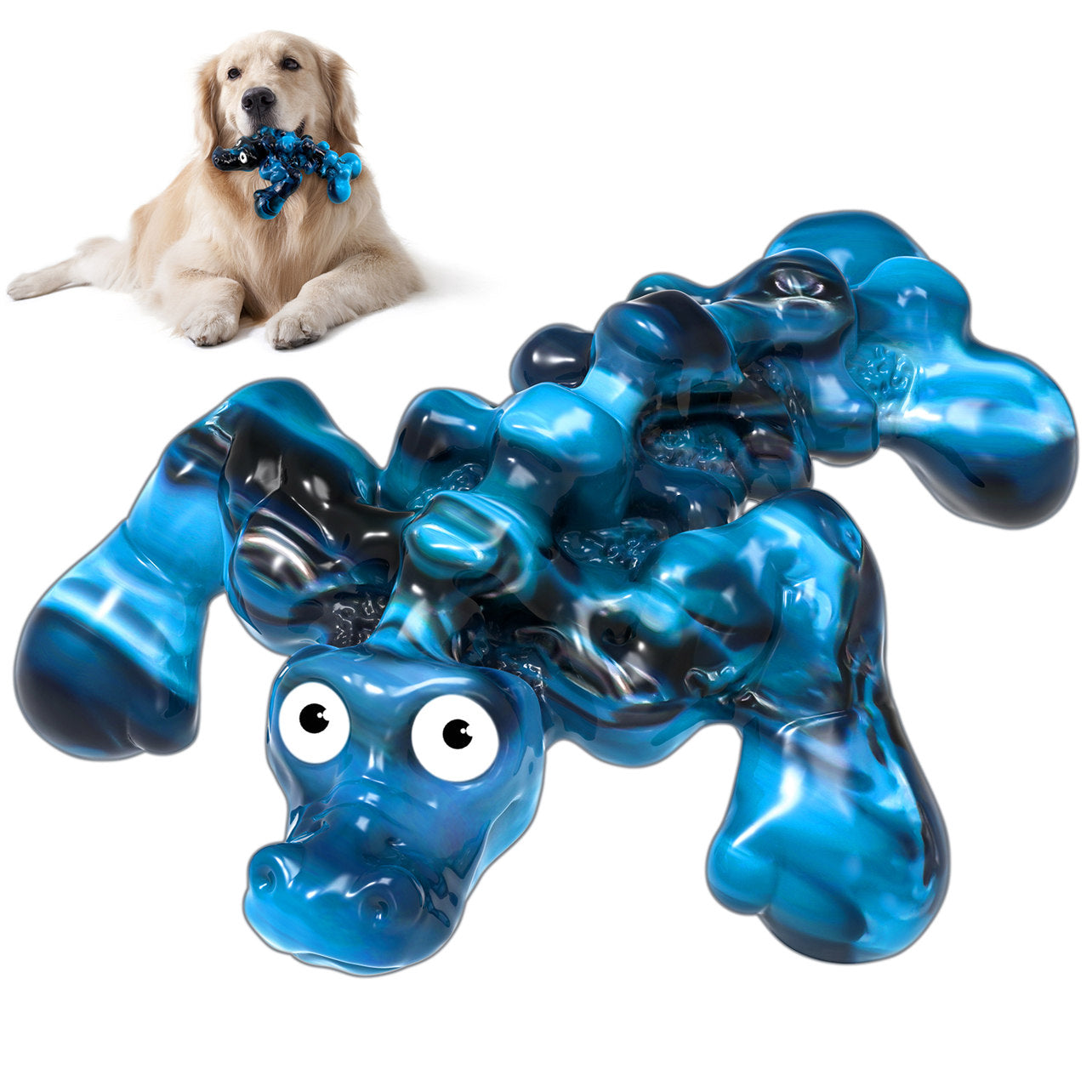 The fuufome blue sturdy boxing alligator dog chew toy is made for strong, large, aggressive chewers, and its special boxing alligator shape attracts your pet's curiosity. The large dog toy itself is tough, and its alligator fist and tail have enough edges for your dog to chew. This unique shape design is not only vivid and lifelike but also provides extra stimulation for your pet. What's even more interesting is that the toy's tail has a special groove at the bottom so you can spread beef sauce and peanut butter to extend your dog's entertainment time.
