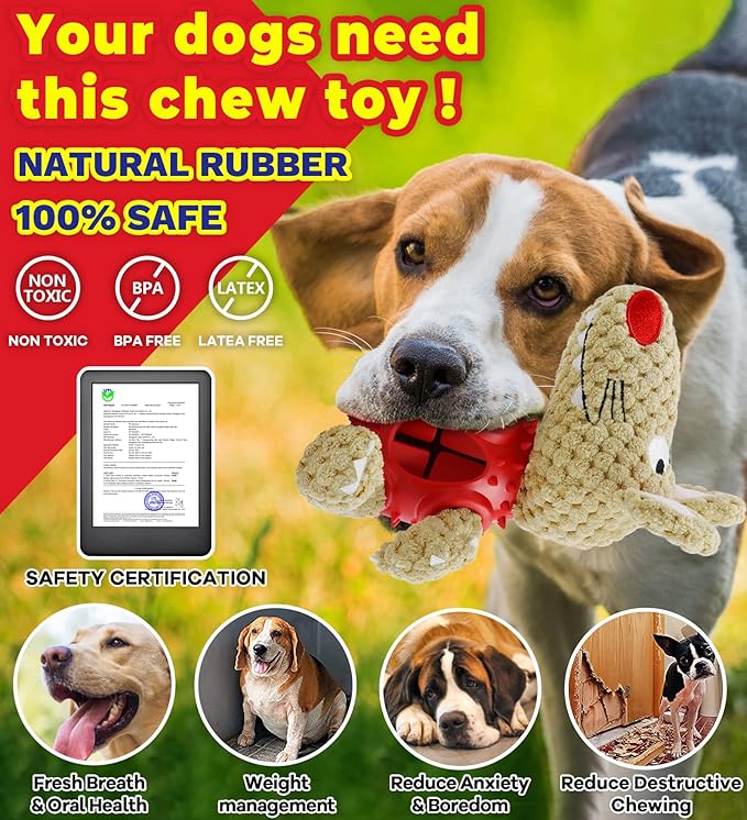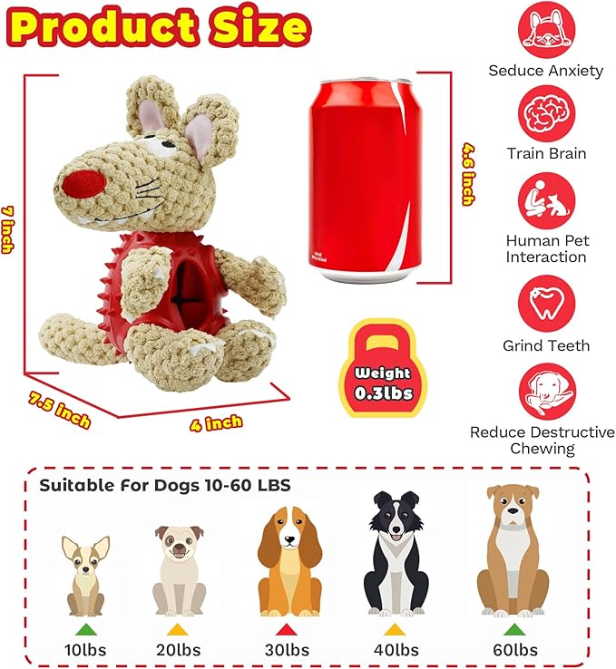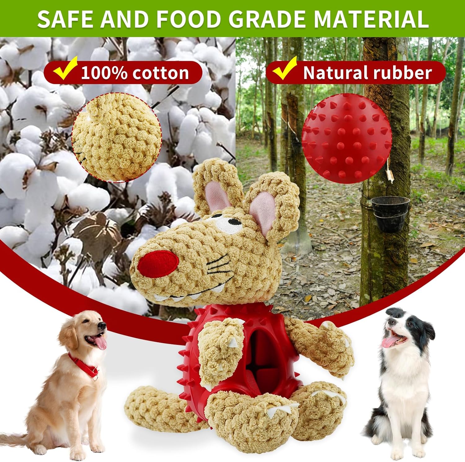 This plush dog toy is made of natural cotton and rubber, prioritizing your pet's safety. Its thick short plush material, reinforced stitching, and chew-resistant natural rubber ensure durability. This sturdy squeaky dog toy is an engaging birthday gift for puppies and small to medium-sized dogs.