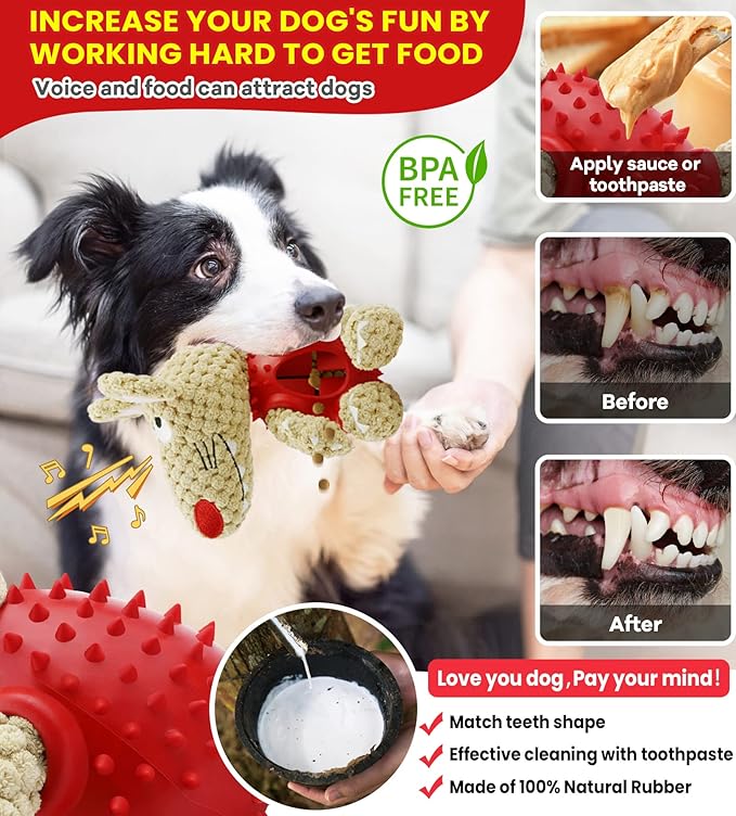 This chew toy effectively cleans your dog's teeth, stimulates their gums, and reduces the accumulation of plaque and tartar, thereby promoting overall dental health. In addition, it encourages a balanced diet and adds fun to your dog's playtime. Cleaning the toy is a breeze - just rinse it with water or throw it in the washing machine after playtime.