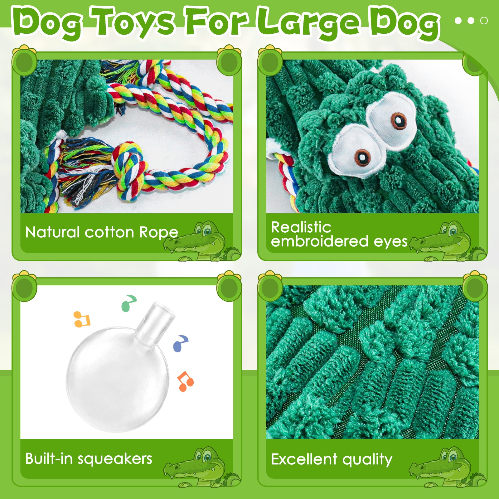 Designed specifically for aggressive chewers, this Fuufome Cotton Rope Alligator Squeak Dog Toy is made with high-quality pure cotton rope and sturdy pineapple cotton canvas material to ensure long-lasting durability. The unique crocodile shape and built-in squeaking device not only attract the dog's attention but also increase the fun of playing. It can effectively consume the dog's excess energy and reduce destructive behaviors. The chewing and pulling actions can also clean teeth and massage gums to promote oral health.