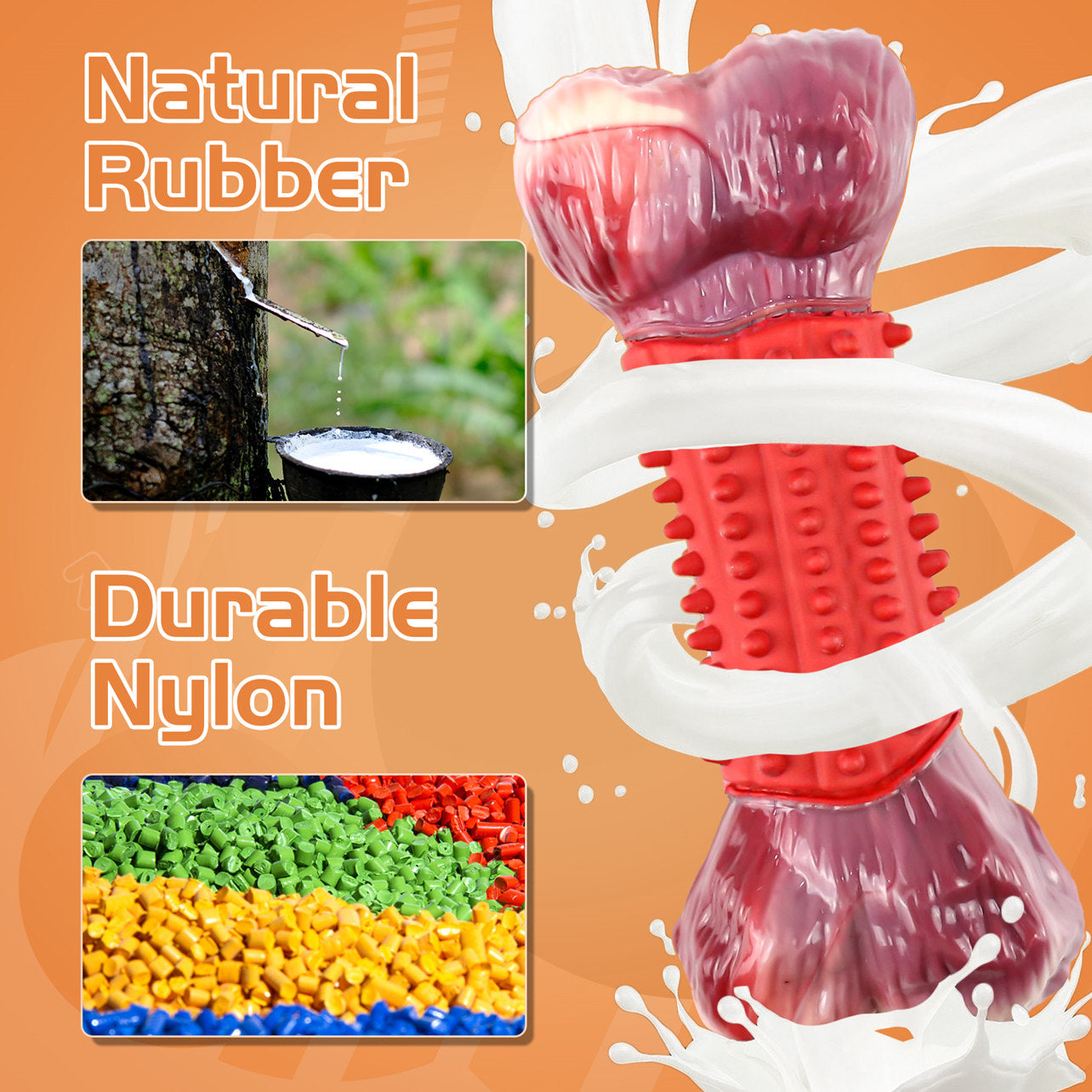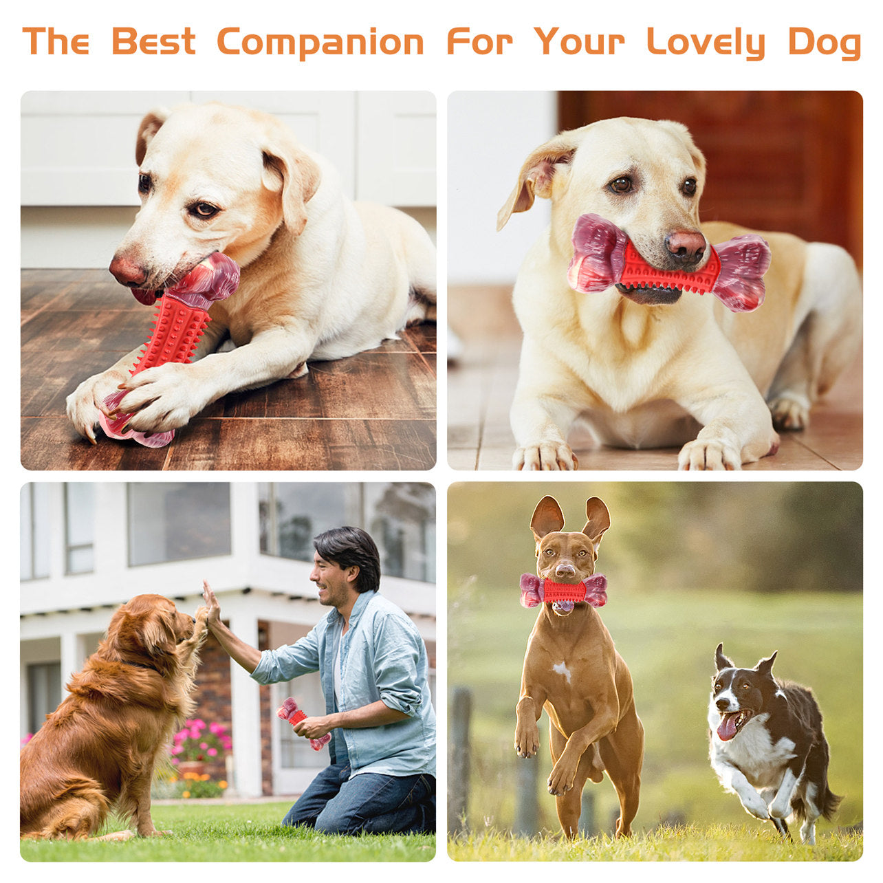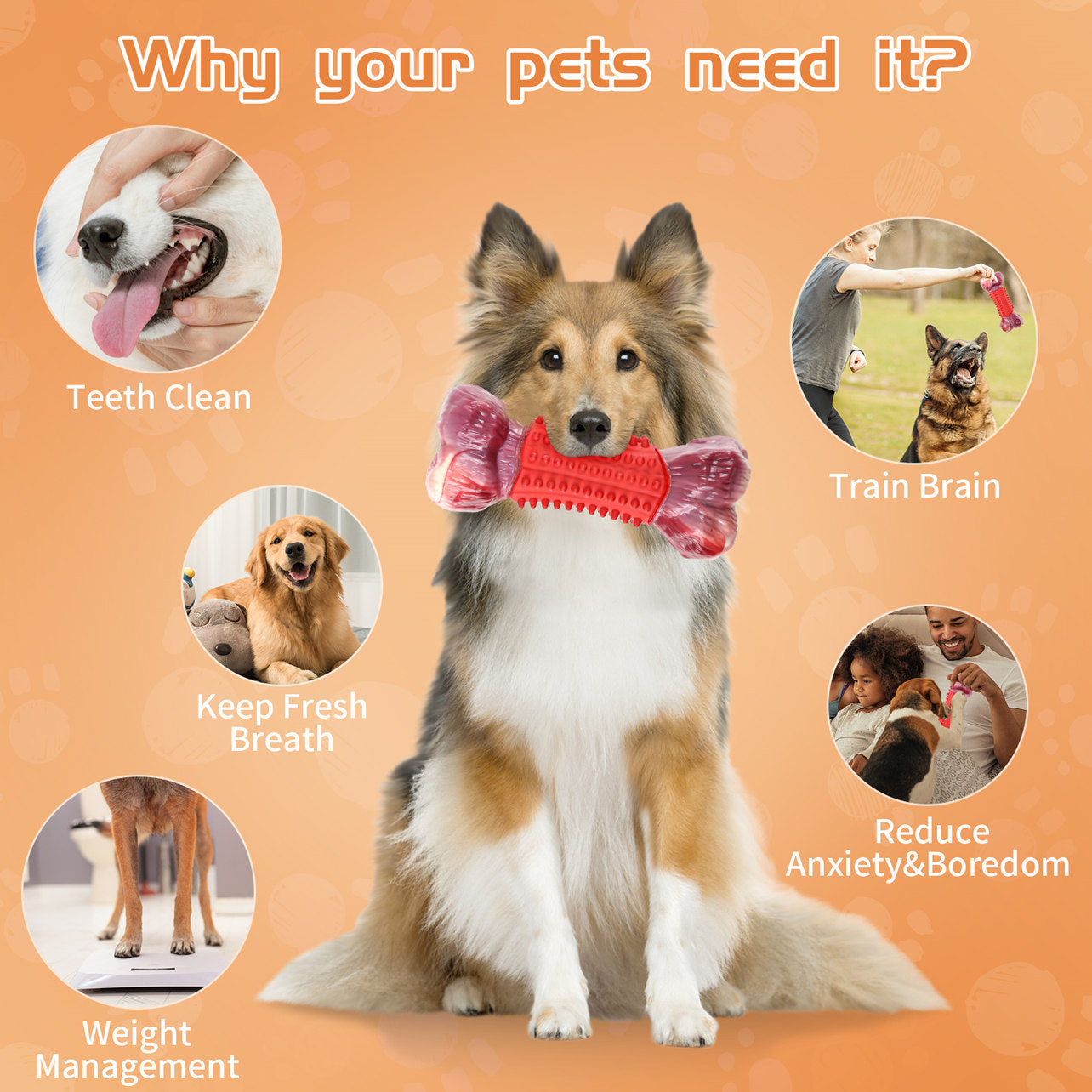 Our dog toys attract the dog's attention through shape and smell. The unique rubber tooth-cleaning design helps to clean teeth better than ordinary nylon toys. And, chewing and playing can help them relieve anxiety and release extra energy. Use the right toys to develop good chewing habits.