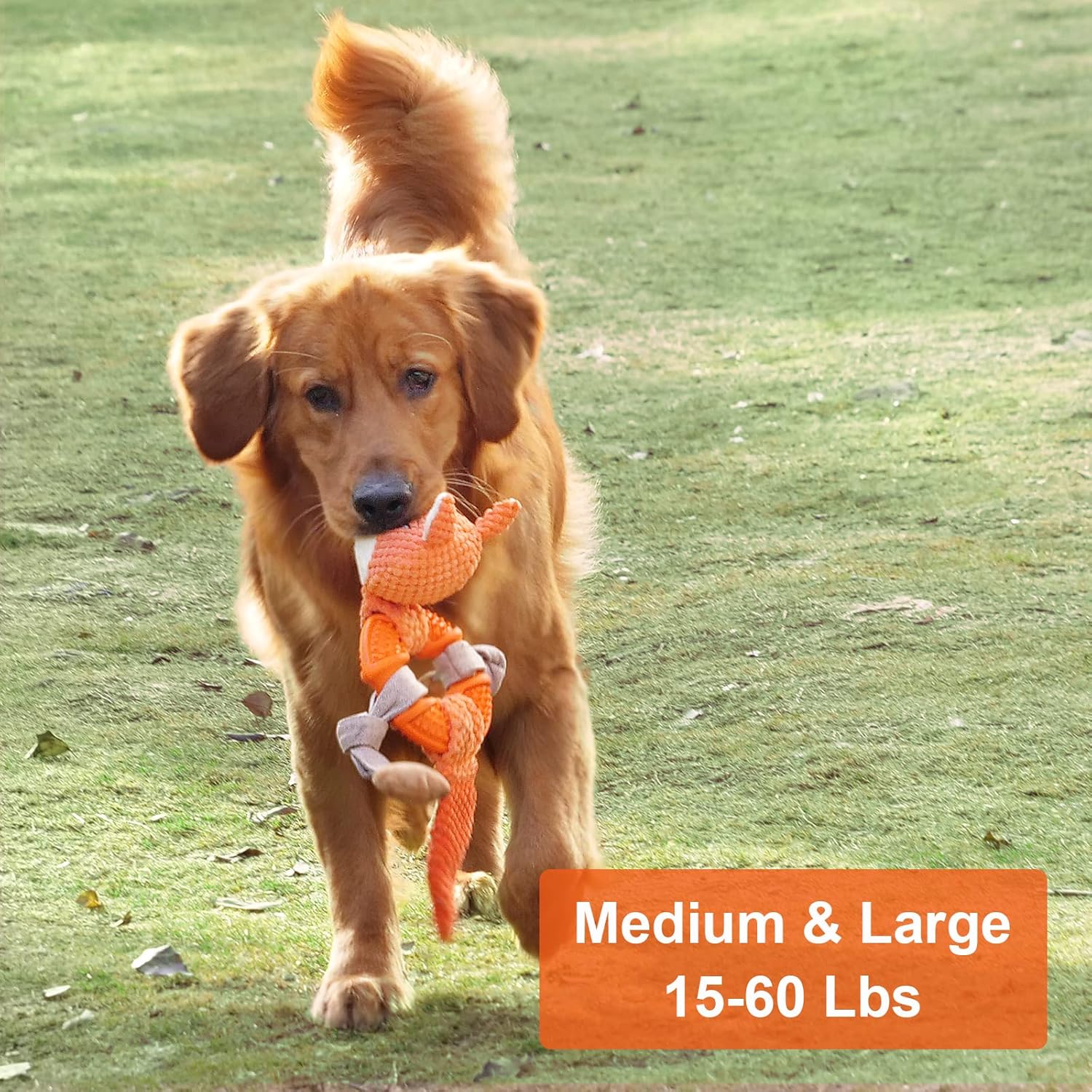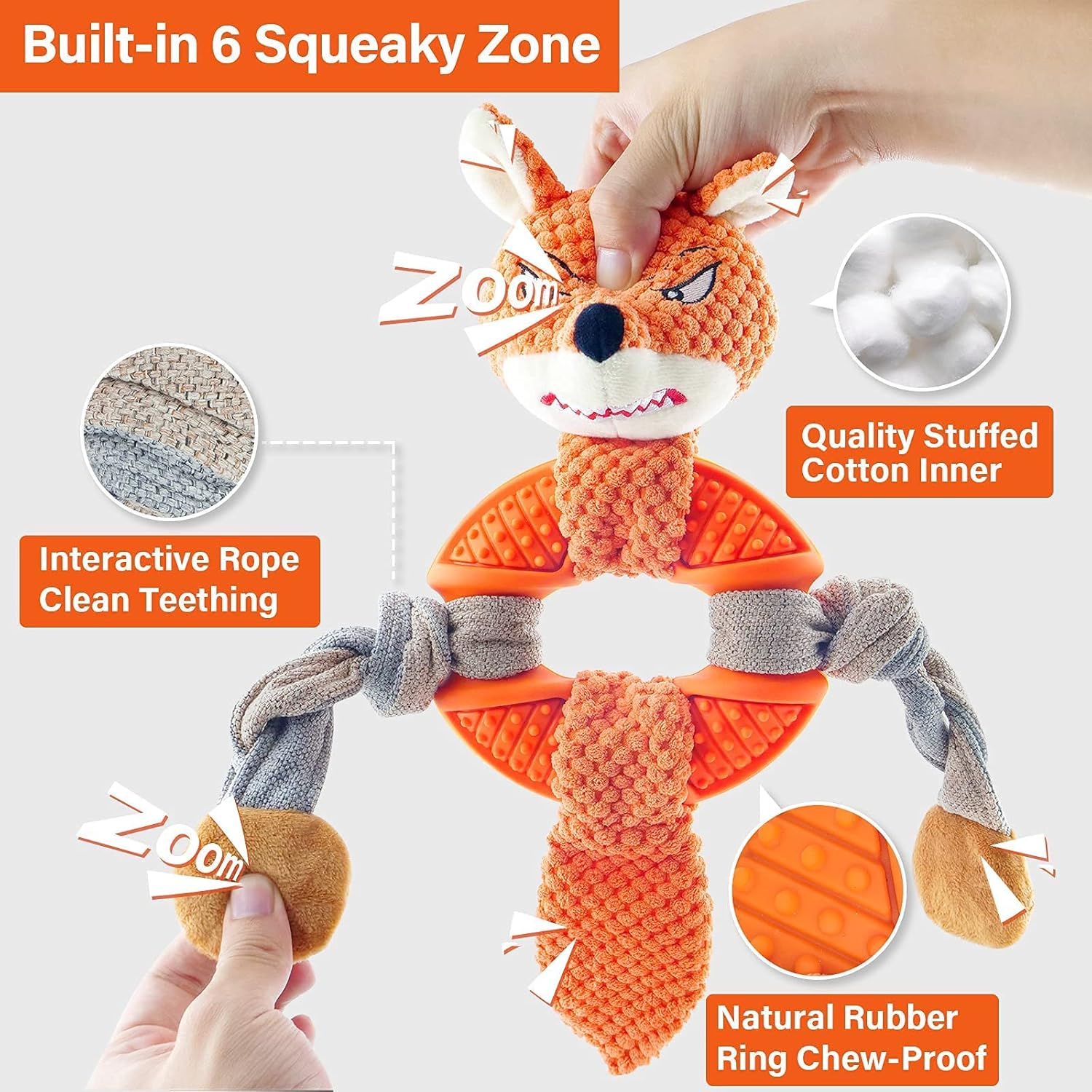 This cute dog plush fox fully meets the instinctive needs of dogs. The sturdier natural rubber squeaky dog toy can release the dog's energy through chewing, and different game modes provide long play time, reduce anxiety and boredom, and keep healthy.