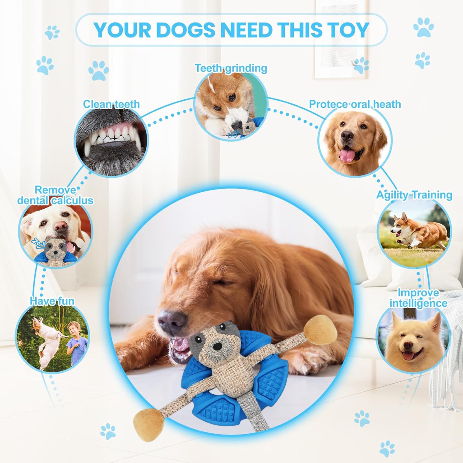 This sturdy toy is suitable for aggressive chewers and can be used for interactive war games. Playing promotes the relationship between dogs and people, the swinging hands are great for tugging, and the chewing rope can also clean your dog's teeth and release your dog's energy. It is also machine washable.