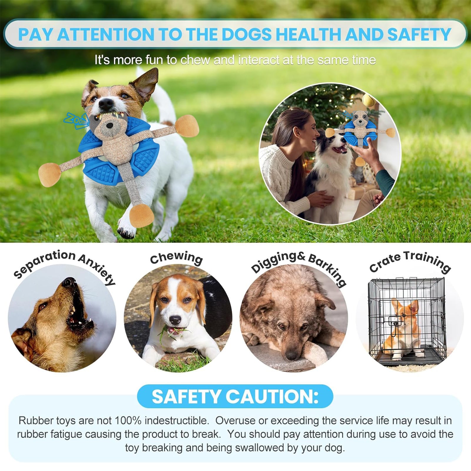 This puppy teething toy is composed of natural rubber, anti-chew rope and squeaky plush. By applying peanut butter, it can attract dogs to chew and clean their teeth. The sturdy and unbreakable dog rope toy allows dogs to play interactive tug-of-war games. The velvet may be bitten, but it does not affect normal use.