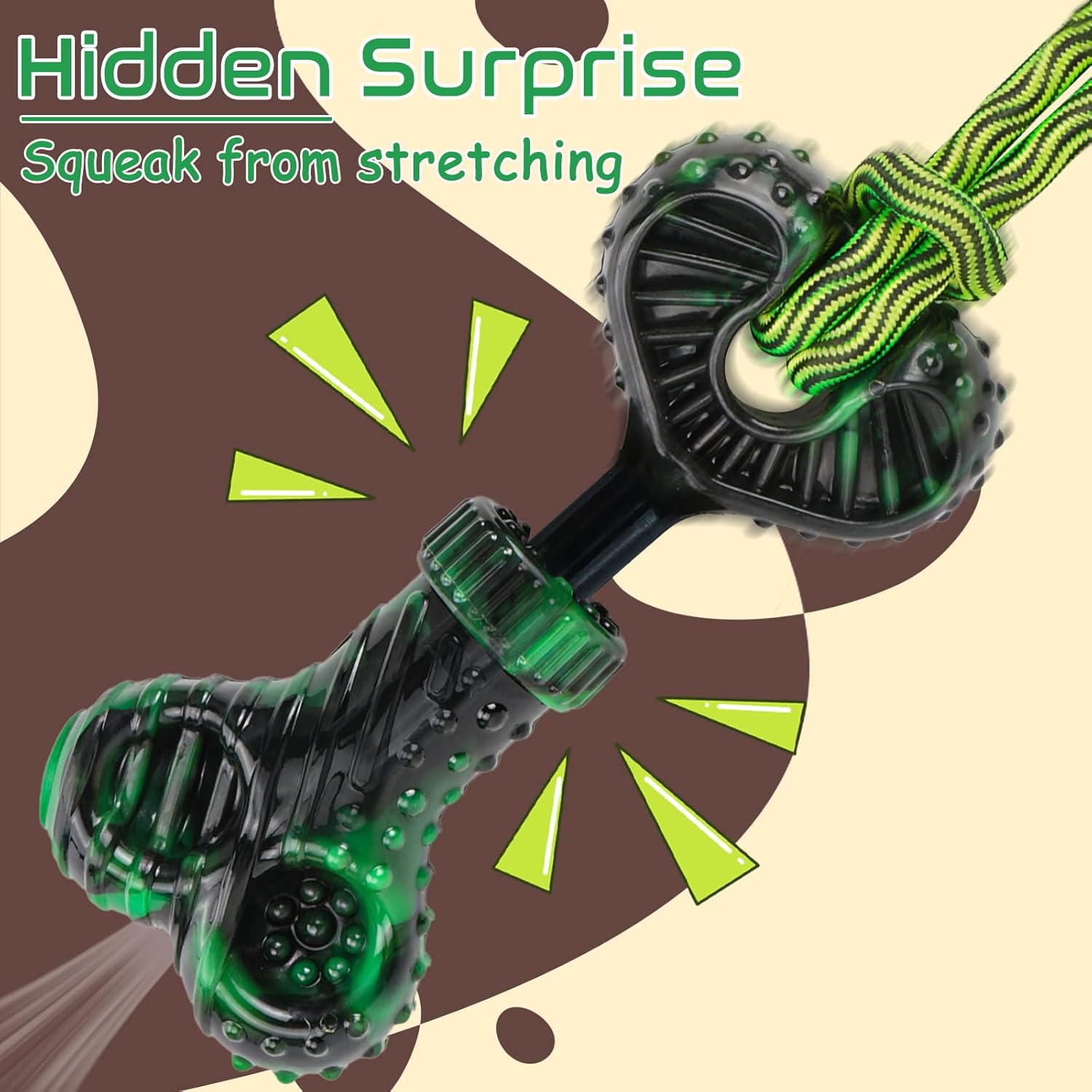 Our dog toys make a squeaking sound when playing tug of war, which will make your dog establish a positive connection with you and reduce your dog's anxiety and boredom. A hidden surprise!