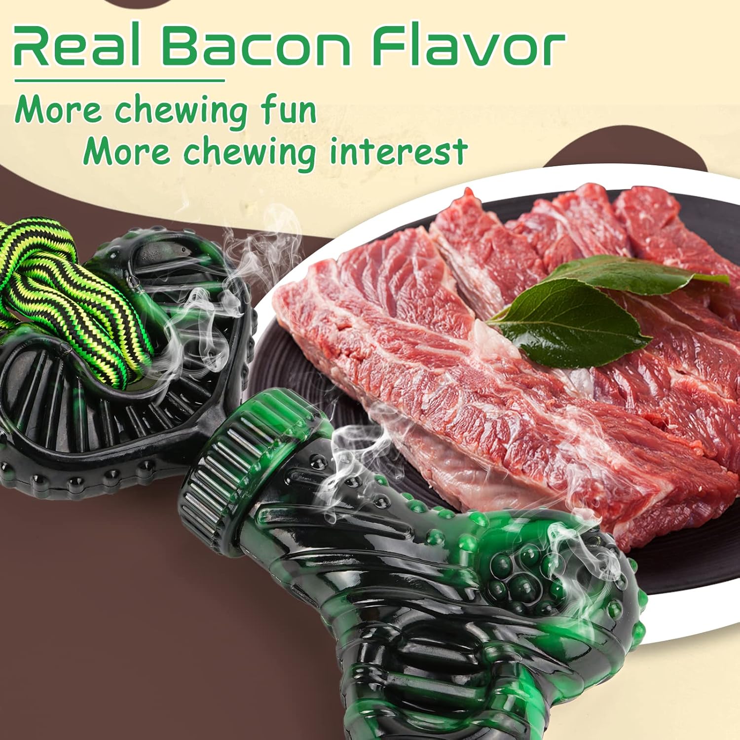 With an attractive bacon flavor, it can arouse your dog's interest and bring chewing satisfaction. Believe us, they can't refuse these dog toys.