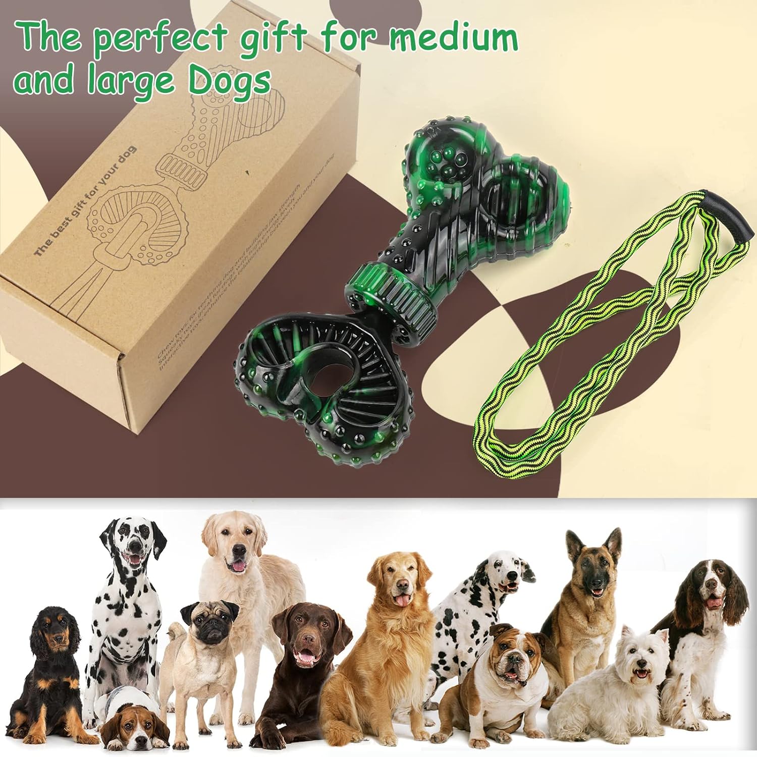 Verified by dozens of dog breeds, our dog toys are sturdy and fine in texture, difficult to destroy, and perfect for aggressive chewers of 40-120 pounds.