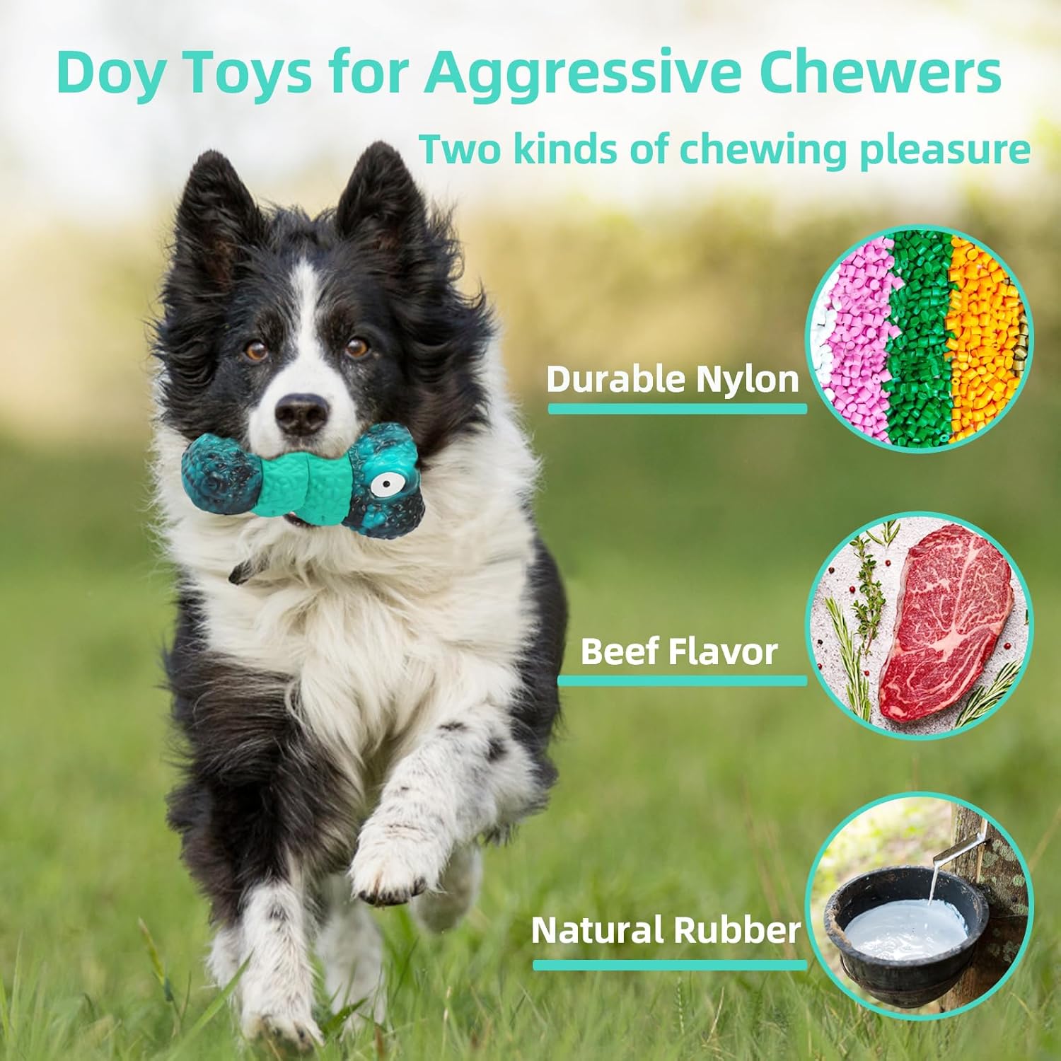 Our dog toys for large dogs are tough to chew and are designed to be durable for large and medium dogs. Made of non-toxic natural rubber and hard food-grade nylon, our dog toys for dogs with strong chewing, indestructible large dog toys are virtually indestructible. Dogs can't resist its subtle and tempting beef flavor. Tough chew dog toys ensure your dog is entertained and safe during the chewing process. No toy is indestructible, but our toys are the closest to indestructible.