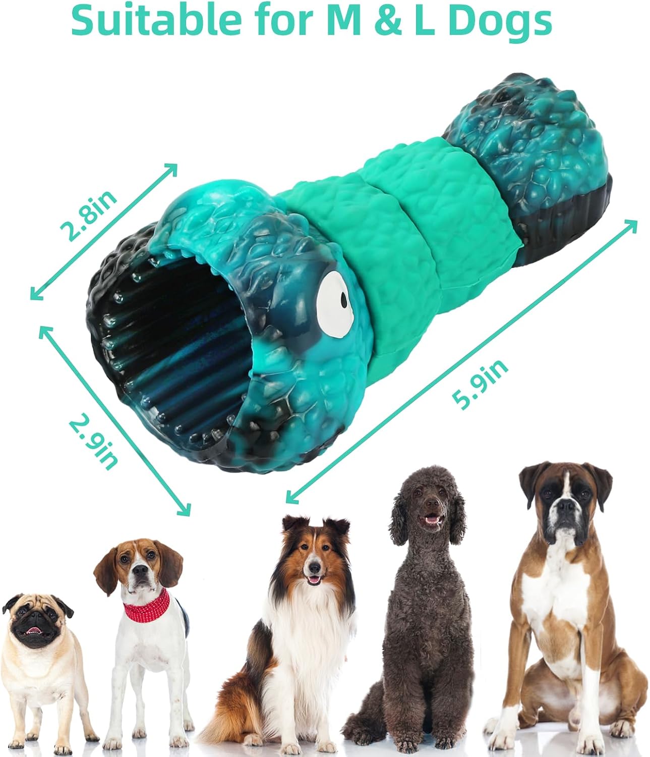 The dog chew toys for large dogs feature a realistic alligator head design and white eyes to attract your dog's attention. For more fun, you can sprinkle treats in the grooves of the tough dog toys for large dogs to extend your furry friend's playtime. The bumpy surface texture and rubber serrations on the bottom of the dog chew toys stimulate chewing and enhance chewing ability. The aggressive dog chew toys for large dogs are bite-resistant and suitable for dogs from 20-100 pounds.