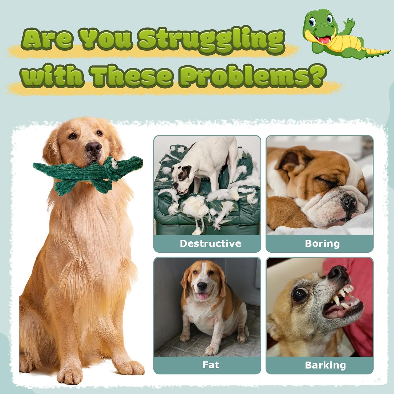 This squeaky dog toy has a squeak hidden in the body, and it takes a while for the dog to find the squeak. The crinkle paper is full of crocodile limbs, which will make sounds when the pet bites or pulls it. These make the game process more challenging and interesting, increase the interactive fun, and can better train the dog's IQ.