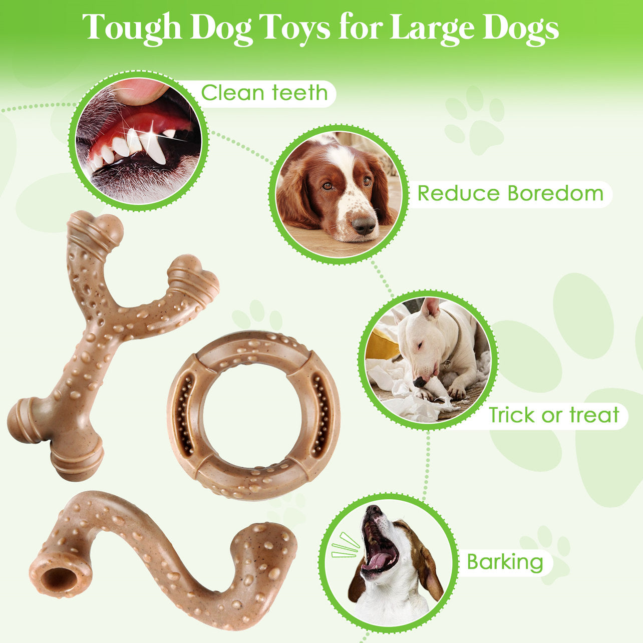 These three uniquely designed dog chew toys are ideal for large, aggressive dog breeds. After rigorous testing, it is guaranteed to withstand the strong chewing force of large dogs and provide pets with longer-term entertainment.