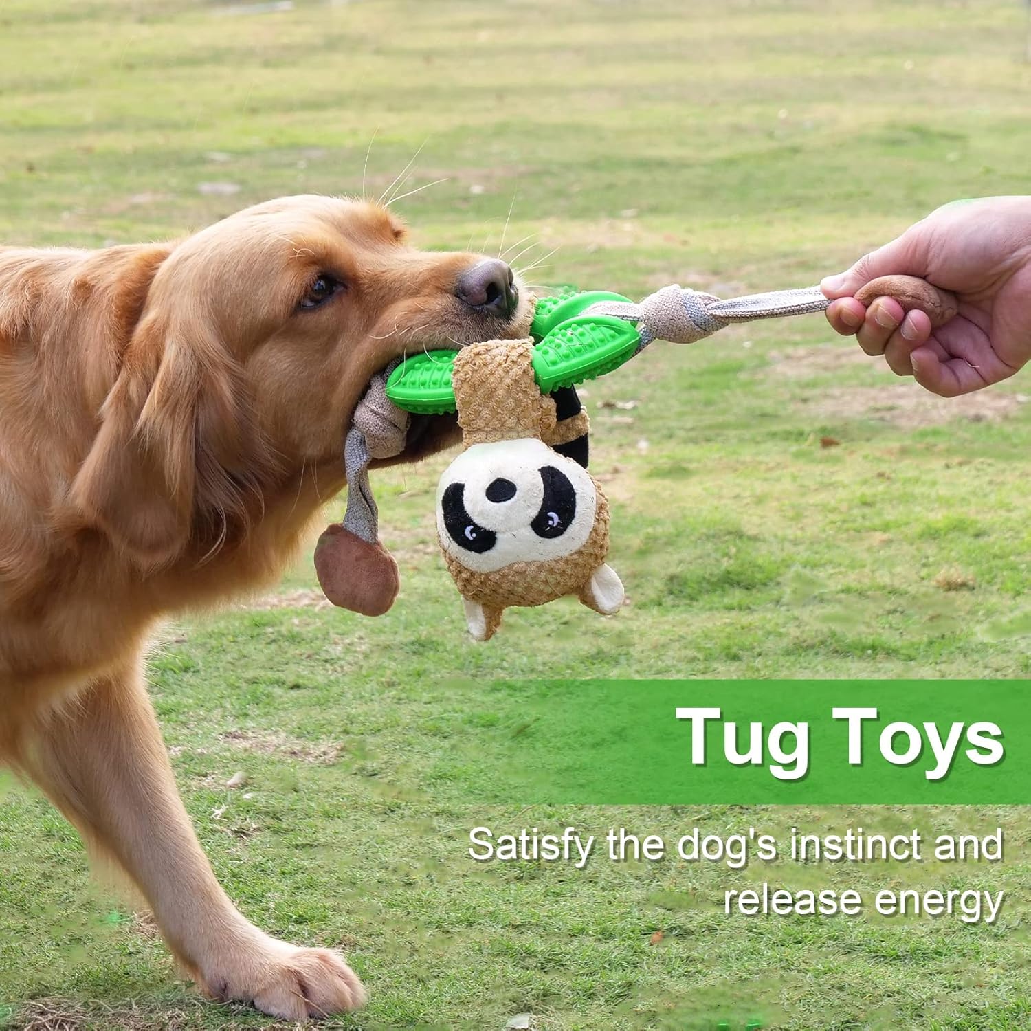 The large breed squeak of this dog toy has 2 built-in sound functions, one on the ear and the other on the tail, which gives your dog a surprise by making different sounds! Dogs like to explore the world by chewing squeaky rope toys, which can keep them focused and energetic, and enjoy the fun of the game.