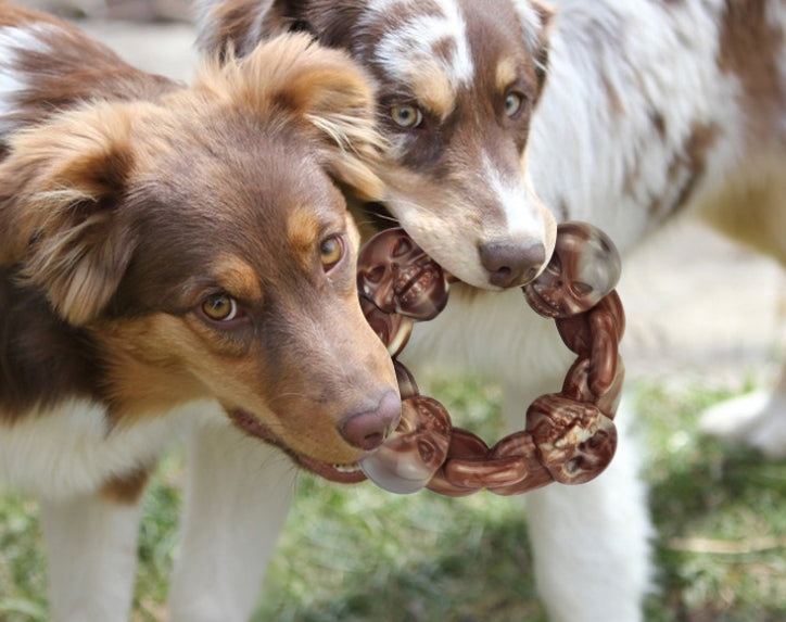 The combination of the skull and the ring is not only creative but also effectively attracts the attention of dogs, stimulating their interest and curiosity in playing.