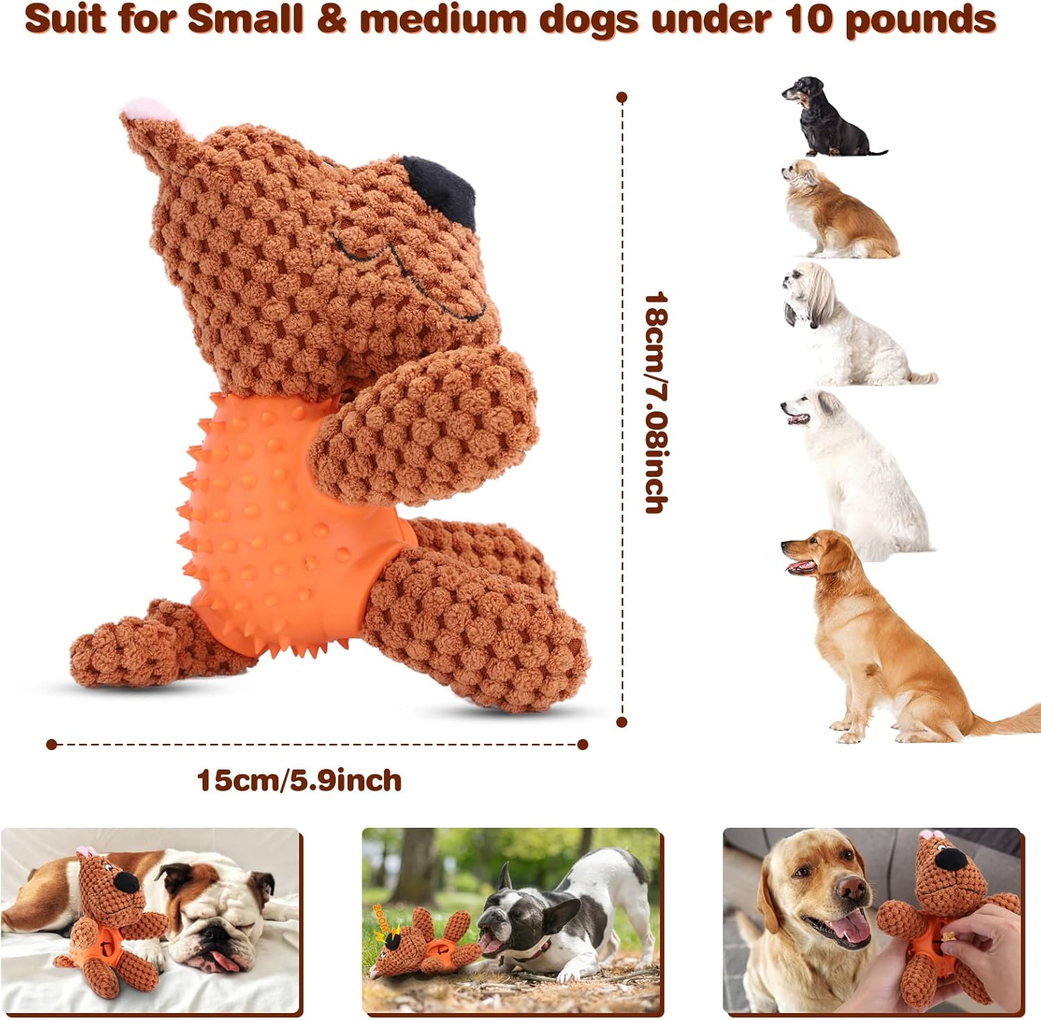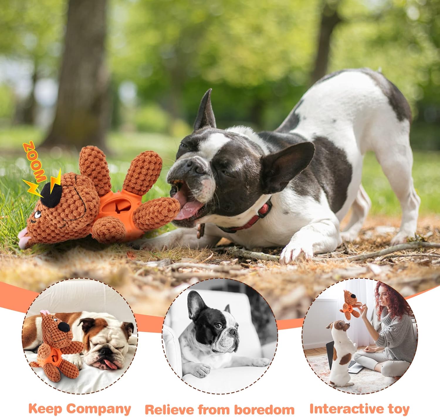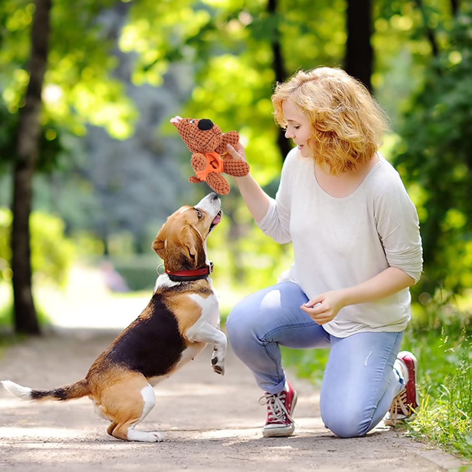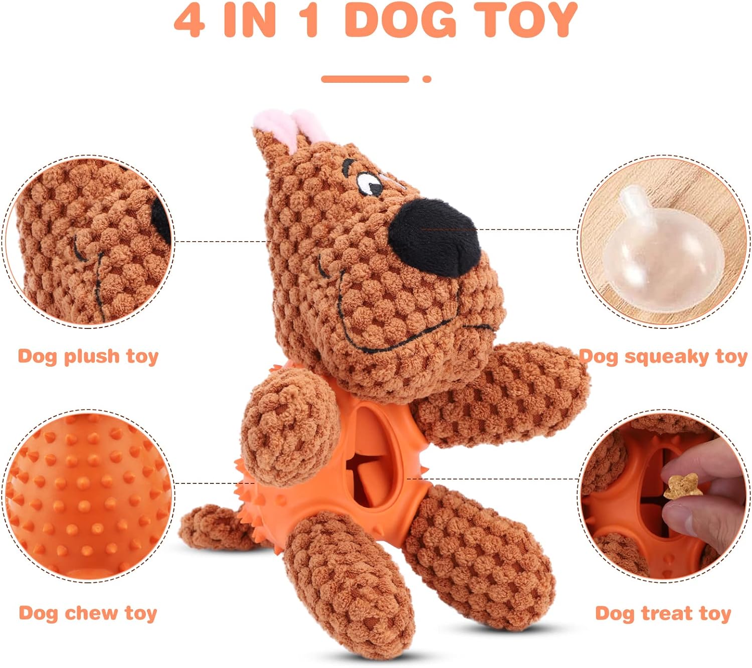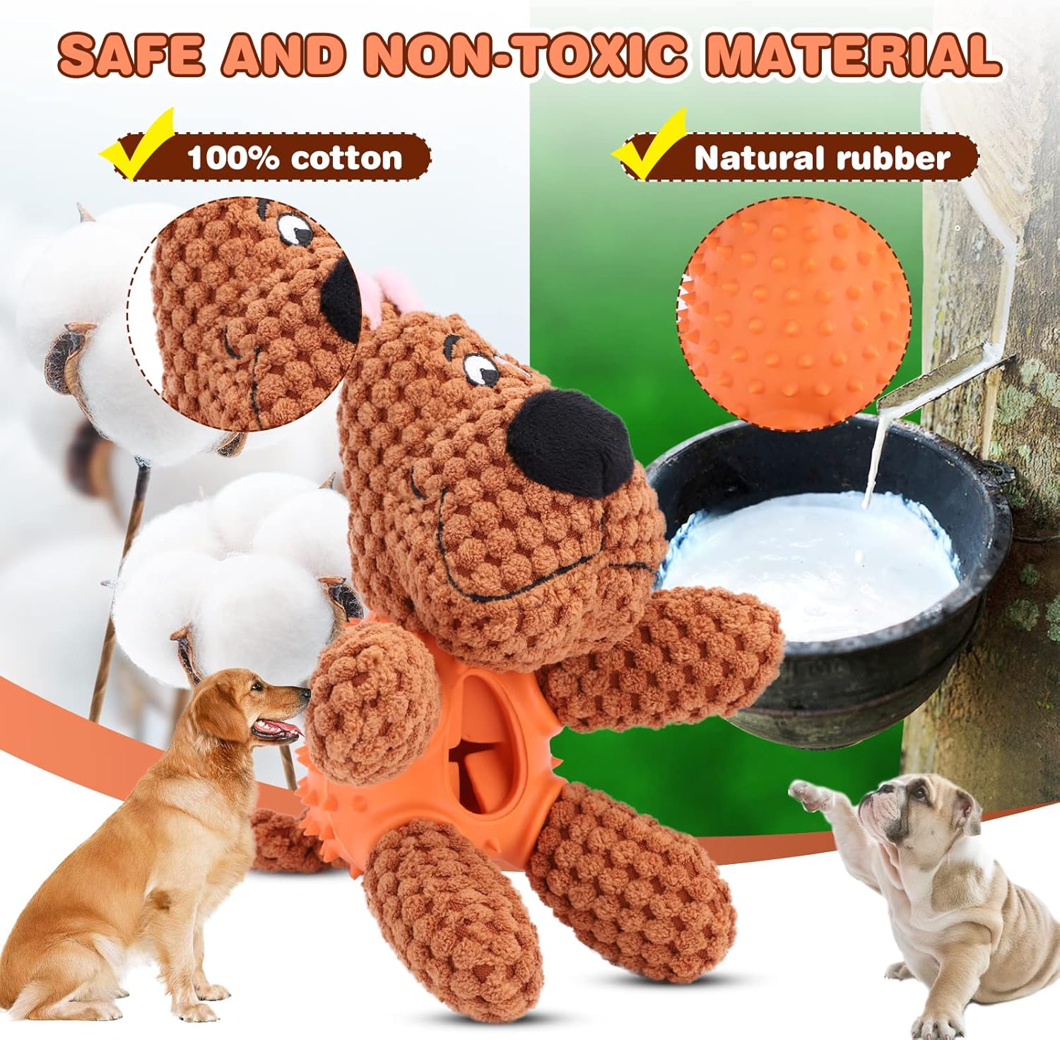 This plush dog toy can be used as a plush toy for dogs to accompany them. In addition, the dog toy can make sounds to attract your pet dog's attention, as a squeaky toy to relieve boredom. The rubber design in the middle makes it possible to be used as a dog teething toy and a snack toy for puppies.