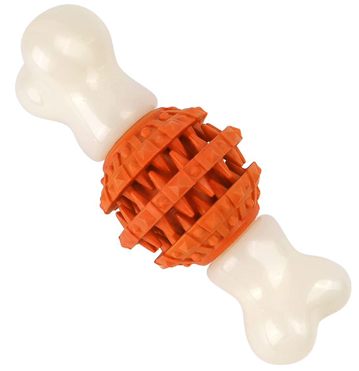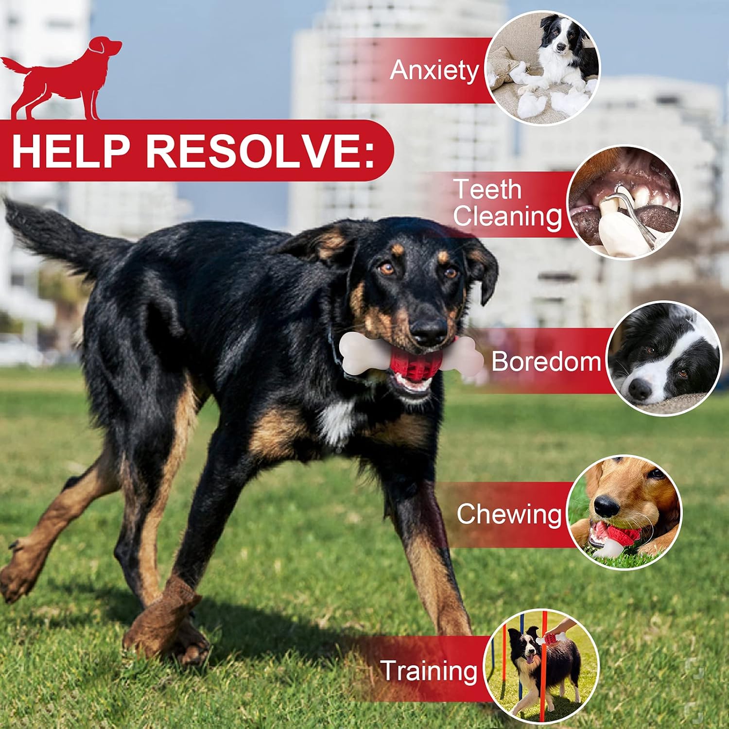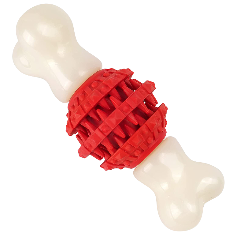 Puppies around 8 months old go through the teething phase, and during this stage, they need to chew to suppress anxiety and itchy teeth. This puppy teething chew bone toy is a great choice for teething puppies. Dogs who play with chew toys will experience less anxiety. This dog chew bone not only keeps your dog's teeth clean but also gives it exercise, making the dog happier.