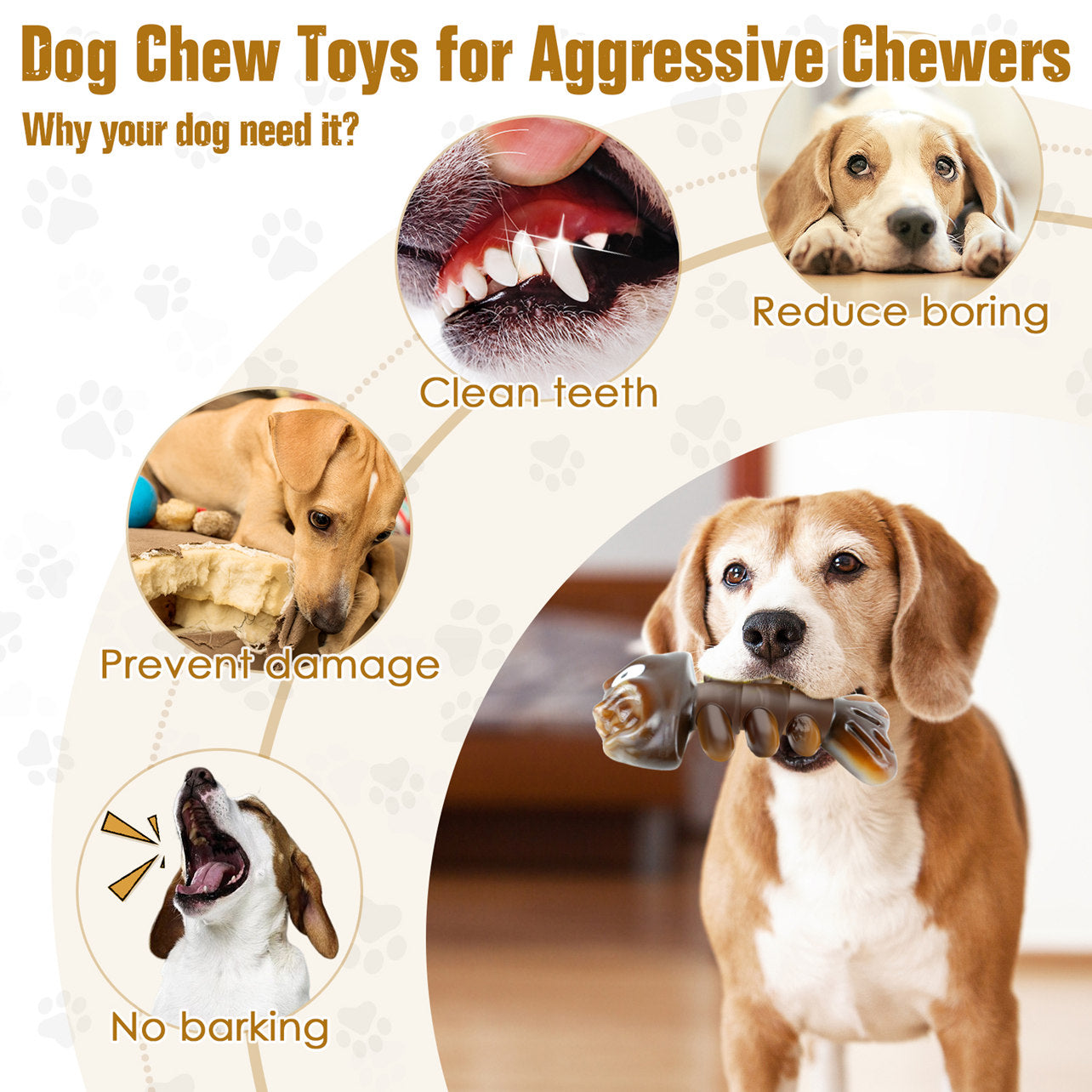 Our dog chew toys are made from food-grade nylon and stand up to aggressive chewing by large breeds. Not only does it provide entertainment, but it also encourages positive chewing behavior and helps your dog get rid of destructive habits.