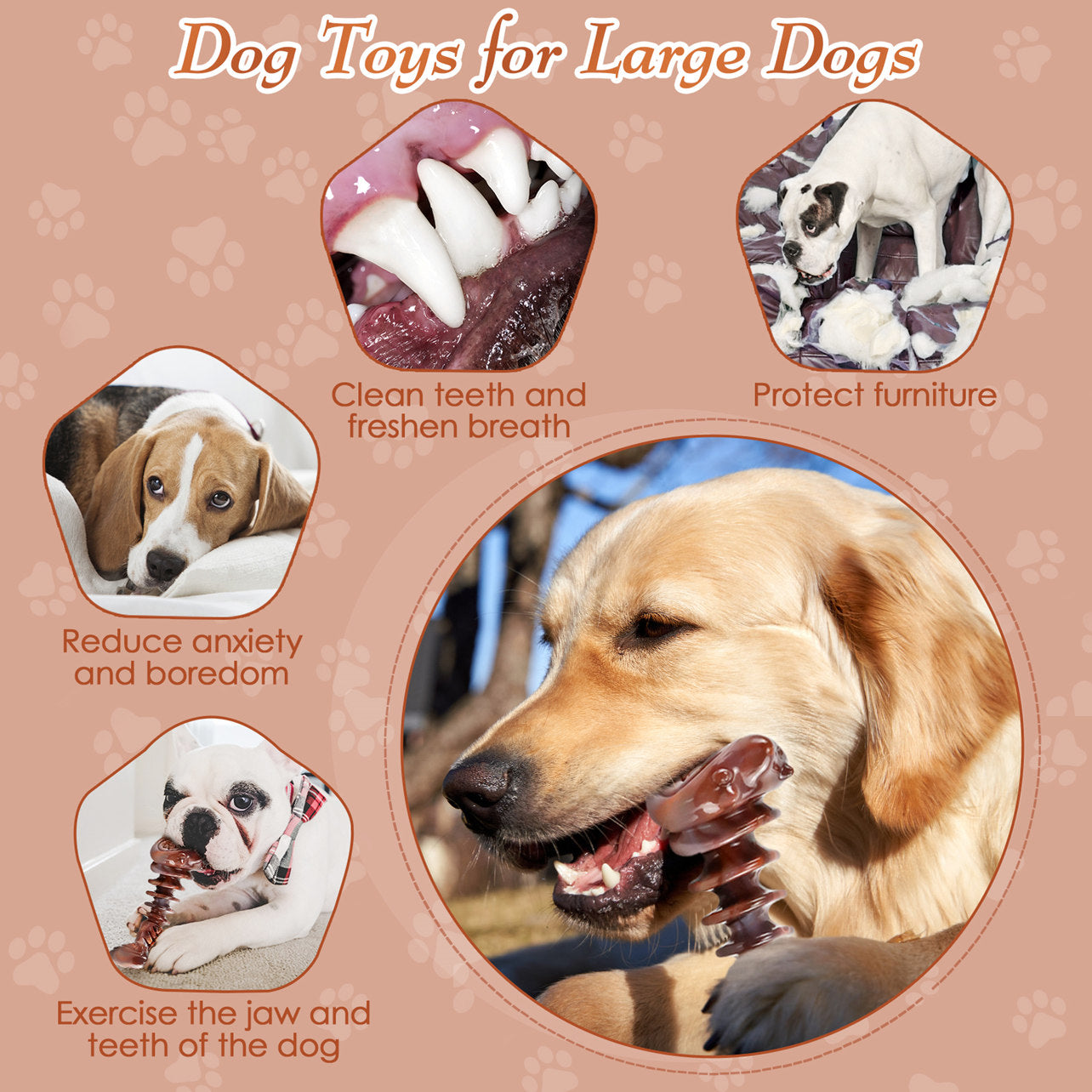 Fuufome's dog chew toys offer a unique milky flavor for large dogs that are aggressive chewers and will be a trigger for your pet. The piranha bones have grooves in the tail so you can spread peanut butter and nutritional paste, making chewing more fun.
